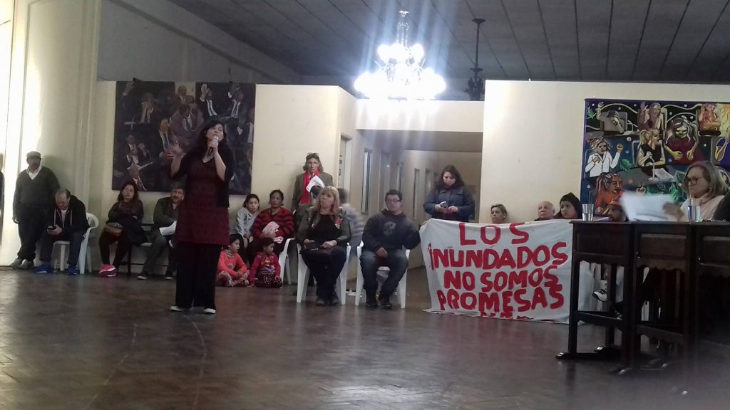 Allí, tomó la palabra Guadalupe Ledesma, integrante de la Comisión de Seguimiento, quién expresó que “nos tomó por sorpresa la declaración de interés público, porque ya es demasiado tarde”. “Casi siempre las familias inundadas estuvieron solas, salvo por las organizaciones sociales y los profesionales que estuvieron”.