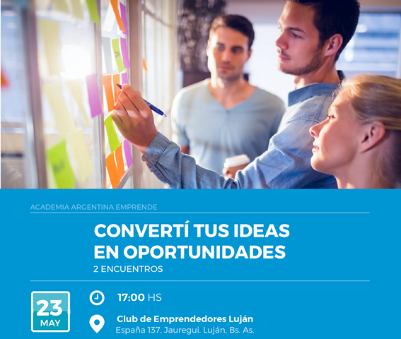 Desde la Secretaría de Producción y Turismo de la Municipalidad de Luján invitan al nuevo taller de “Capacitación sobre Desarrollo de ideas de oportunidades de negocios” que comienza este jueves en el Club de Emprendedores ubicado en la calle España 137, en la localidad de Jáuregui (entre Los Tejedores y Av. San Martín).
