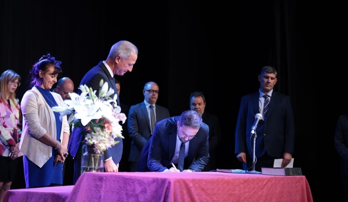 En la jornada se desarrolló en el teatro Dr. Julio Cesar Gioscio, con la presencia de autoridades judiciales y del Departamento Ejecutivo de las localidades de Mercedes y Luján, el intendente Juan Ignacio Ustarroz y el intendente Leonardo Boto, respectivamente.