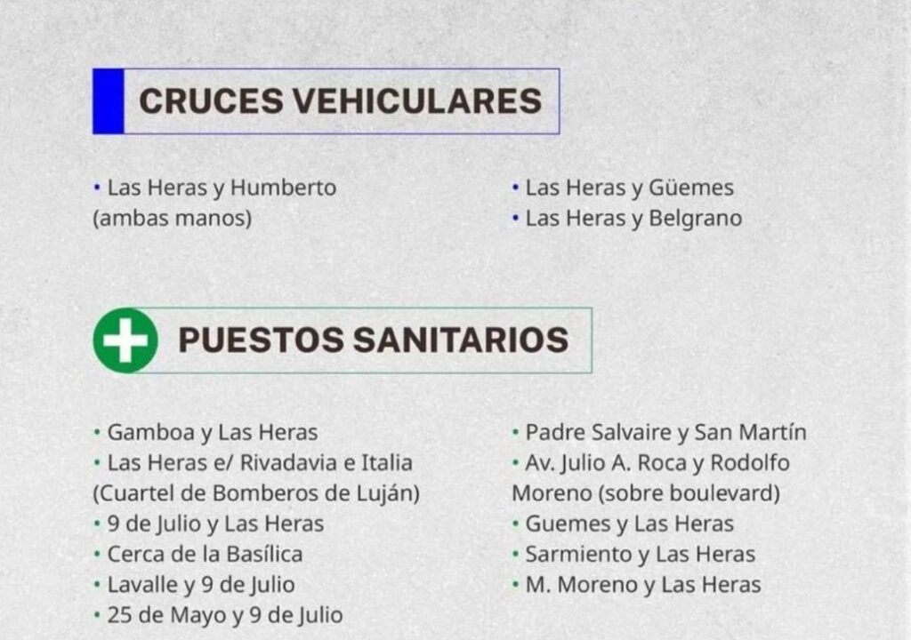 El Municipio de Luján informó los diferentes cortes de calles, lugares de puestos sanitarios y cruces permitidos y habilitados durante la jornada de la peregrinación juvenil.