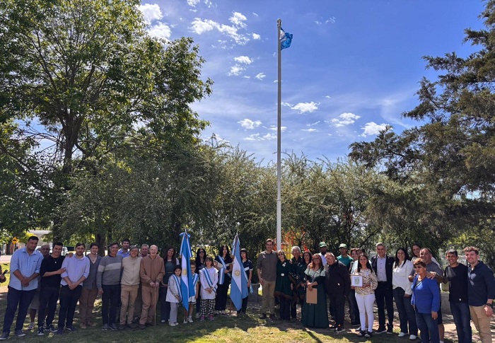 A continuación, se realizó la entrega de banderas argentinas para las distintas instituciones educativas, y de un presente para la Cooperativa Sumando Voluntades en agradecimiento por la restauración del surtidor que forma parte del patrimonio histórico de la localidad.